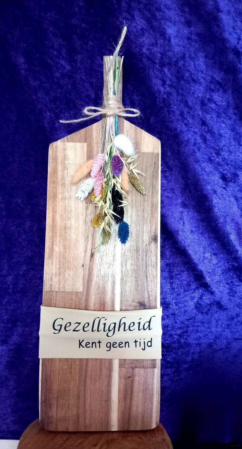 Kaartenhouder beukenhout inclusief proefbuisje met droogbloemetjes en kaart.