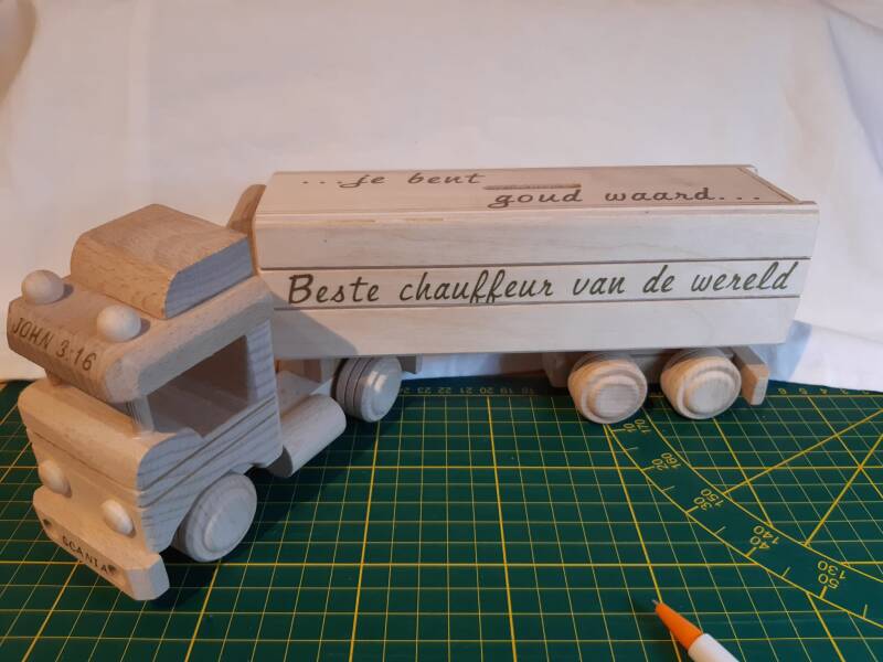 Onderstaande vrachtwagens zijn niet meer leverbaar, maar belettering is als voorbeeld.